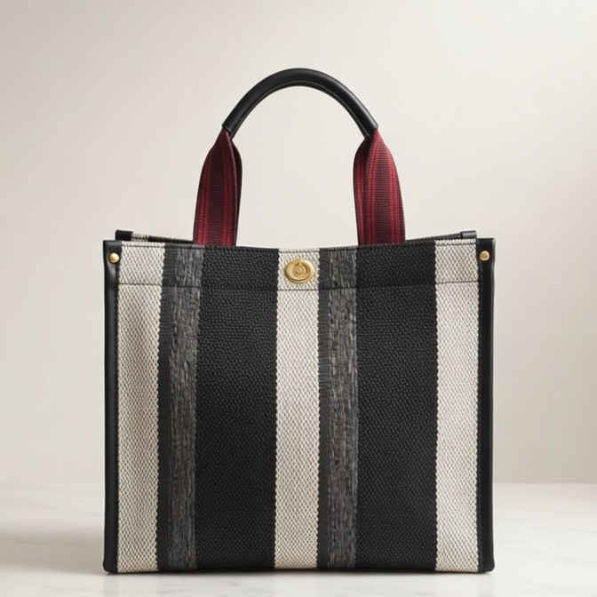 Elegant Striped Mesh Tote Bag